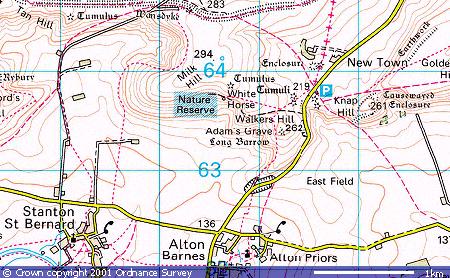 Position of the Alton Barnes white horseScale 1:50 000