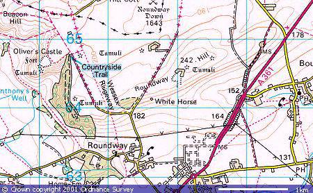 Position of the new Devizes white horseScale 1:50 000