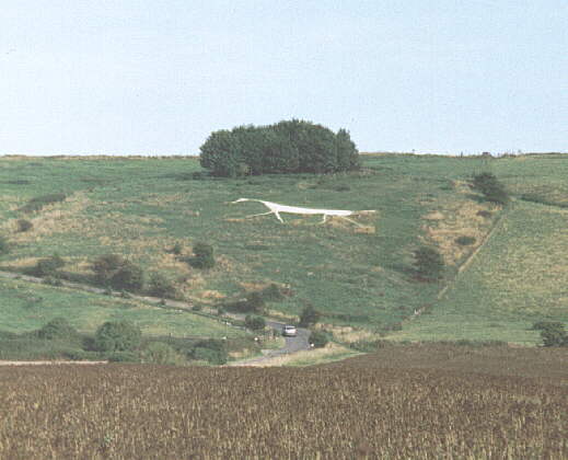 The Hackpen white horse viewed from southwest of the Broad Hinton road on Fiddler's Hill.
